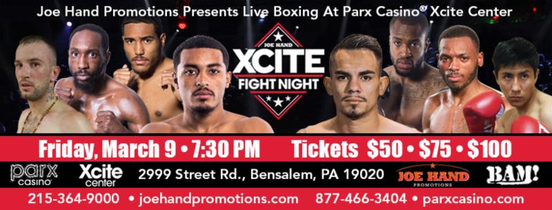 The March 9 card will consist of seven fights with the first one beginning at 7:30 p.m. Doors to open at 6:30 p.m. The cards are promoted by Joe Hand Promotions. This event is only for adults age 21 and older.
