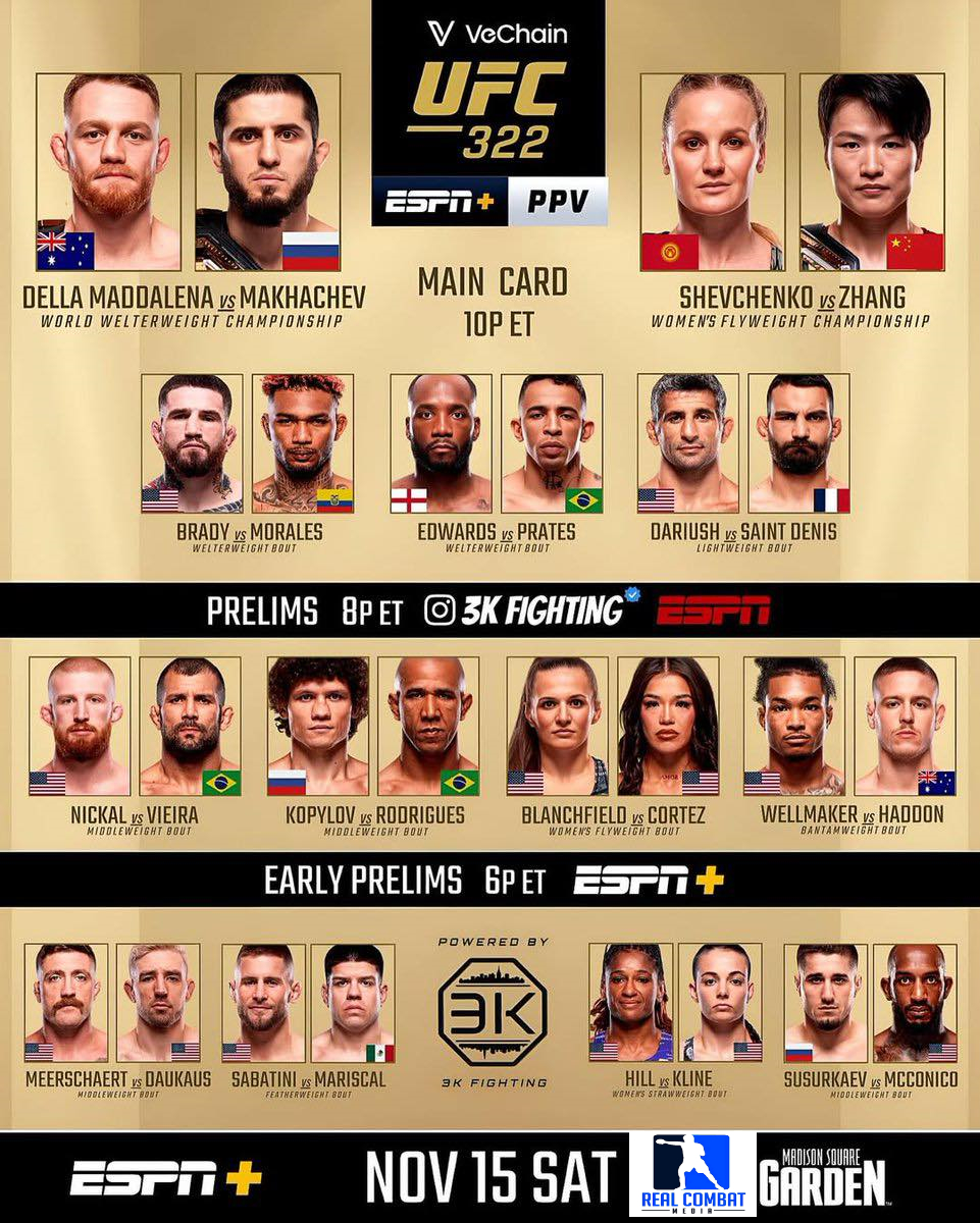 UFC 322 NYC WEIGH-IN, COUNTDOWN SHOW, PRESSER, MEDIA DAY, BETTING ODDS & HOW TO WATCH!