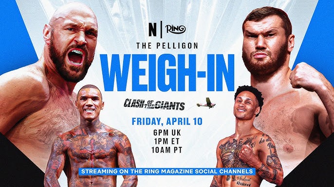 Tyson Fury vs. Arslanbek Makhmudov Weigh-in & Press Conference Video London, UK (April 10th, 2026)– Tyson Fury weighed in at 267.9 lbs (121.5 kg) and Arslanbek Makhmudov weighed 264.9 lbs (120.1 kg) at the April 10, 2026, weigh-in in London, setting the stage for their heavyweight bout at Tottenham Hotspur Stadium. Fury appeared significantly lighter […]