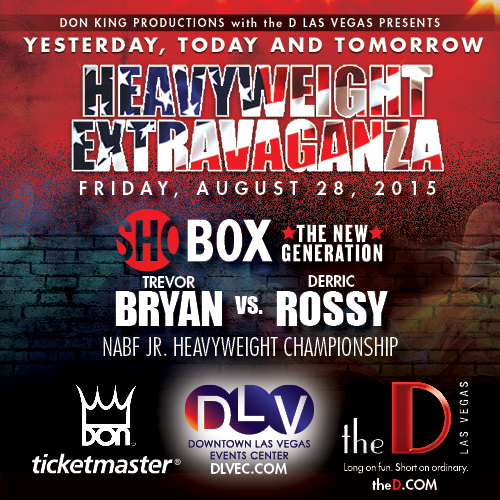 Las Vegas, NV (August 28th, 2015)– Boxing promoter Don King, Don King Productions, and USA Showtime’s ShoBox *The New Generation* will present a six bout boxing card featuring five heavyweight bouts tonight, Friday August 28, 2015, at The D Hotel & Casino’s Downtown Las Vegas Events Center. Entitled ‘Yesterday, Today and Tomorrow’ Heavyweight Extravaganza, the main event will feature Trevor Bryan versus Derric Rossy in a ten rounder for the vacant World Boxing Council North American Boxing Federation Junior Heavyweight title.
