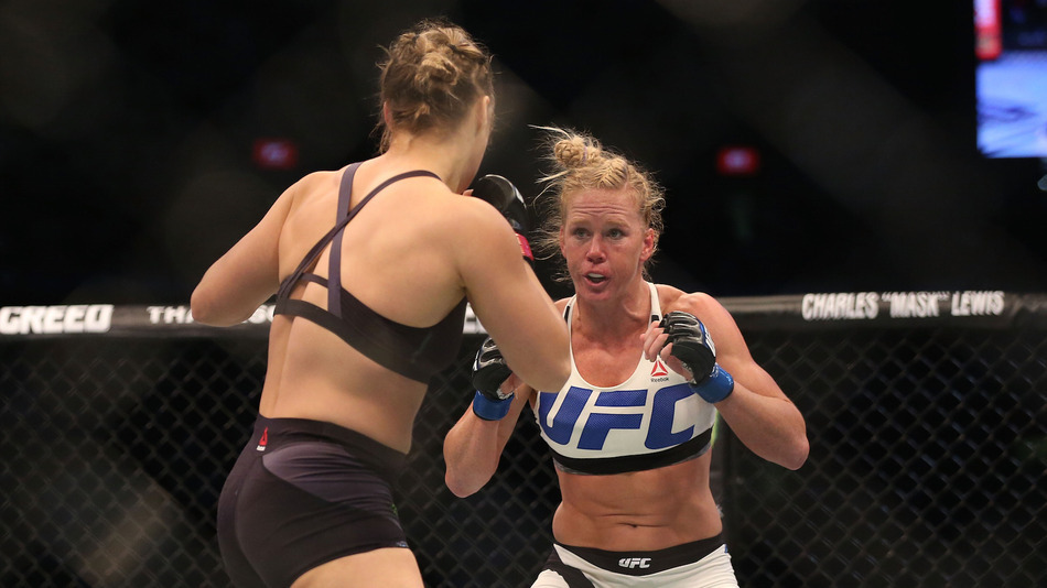 of the United States (L) and Holly Holm of the United States compete in their UFC women's bantamweight championship bout during the UFC 193 event at Etihad Stadium on November 15, 2015 in Melbourne, Australia. (Photo by Quinn Rooney/Getty Images)" width="950" height="534" /> MELBOURNE, AUSTRALIA – NOVEMBER 15: Ronda Rousey of the United States (L) and Holly Holm of the United States compete in their UFC women’s bantamweight championship bout during the UFC 193 event at Etihad Stadium on November 15, 2015 in Melbourne, Australia. (Photo by Quinn Rooney/Getty Images)HOLLY HOLM MAKES HISTORY WITH A HUGE UPSET OVER RONDA ROUSEY