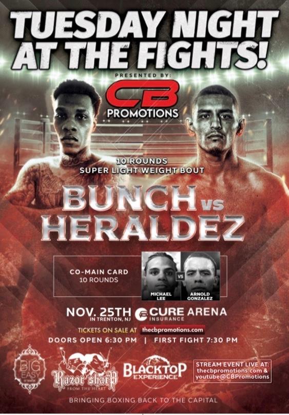 In the main event, local favorite Shinard Bunch 21-3-1, 17 KOs of Hamilton, New Jersey takes on Juan Heraldez (16-3-1, 10 KOs) of Las Vegas in a eight-round super lightweight bout.
