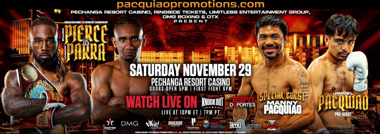 Manny Pacquiao Jr. Debuts at Pechanga in Temecula, CA By Robert Brizel, Head Real Combat Media Boxing Correspondent Temecula, CA ( November 28th, 2025)– Manny Pacquiao Promotions, Pechanga Resort Casino in Temecula, California, Ringside Tickets, Limitless Entertainment Group, DMG Boxing & OTX will present an exciting 10 bout card of professional boxing on Saturday evening, […]