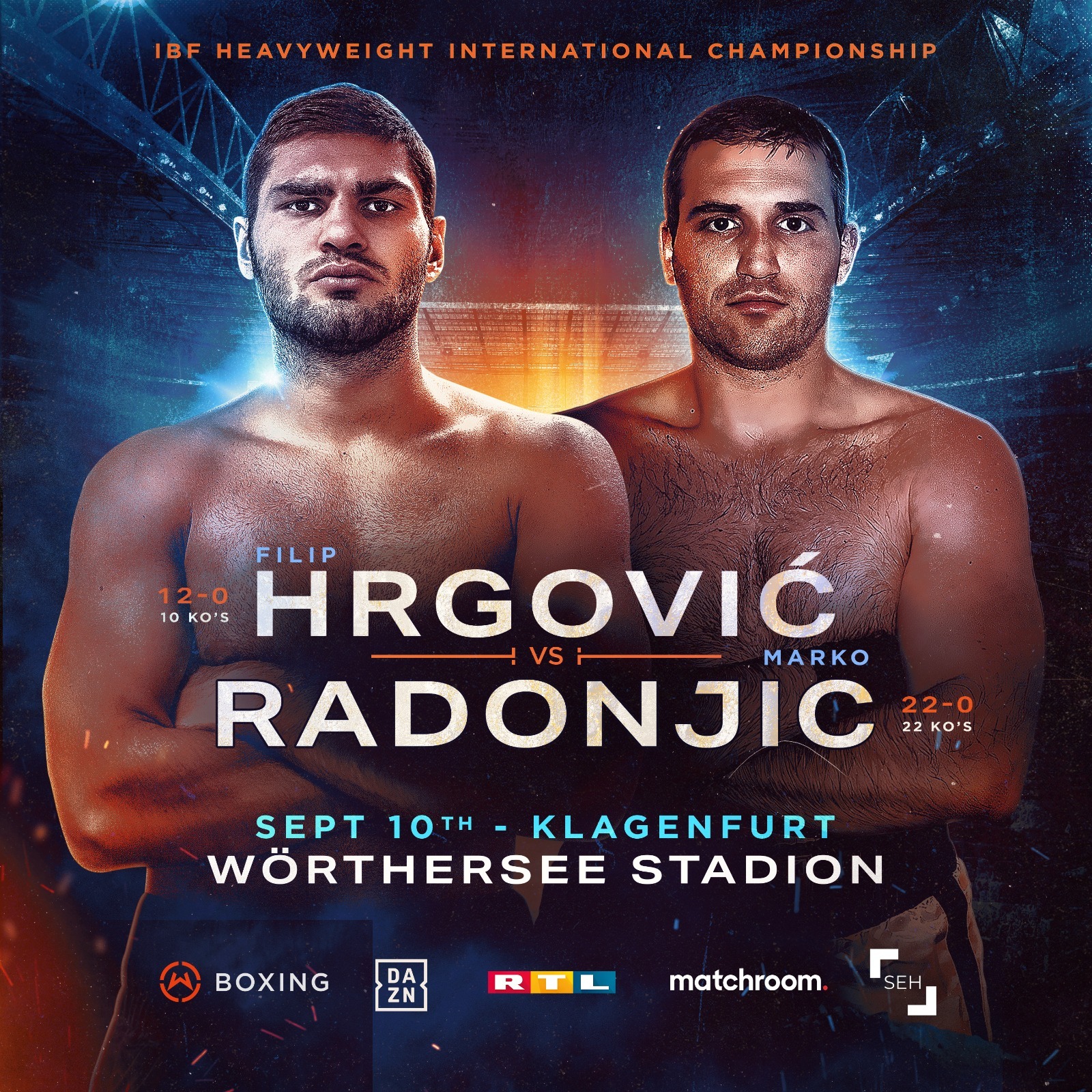 HRGOVIĆ AND RADONJIC CLASH ON SEPTEMBER 10 AT WÖRTHERSEE STADIUM IN KLAGENFURT, AUSTRIA Unbeaten heavyweights Filip Hrgović (12-0, 10 KOs) and Marko Radonjic (22-0, 22 KOs) clash in a ‘Battle of the Giants’ on September 10 at the Wörthersee Stadium in Klagenfurt, Austria for the IBF International Heavyweight Title, live on RTL in Croatia and on DAZN in over 190 countries and territories worldwide. Hrgović, […]